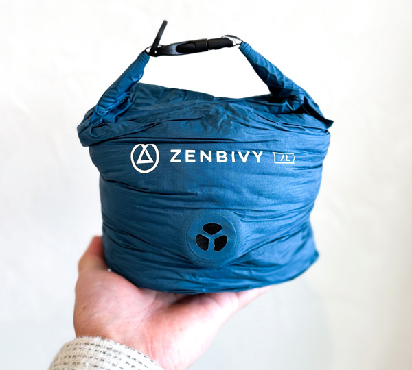 コンプレッション系のドライサックに入れれば、収納サイズはビックリするほどコンパクトになります。